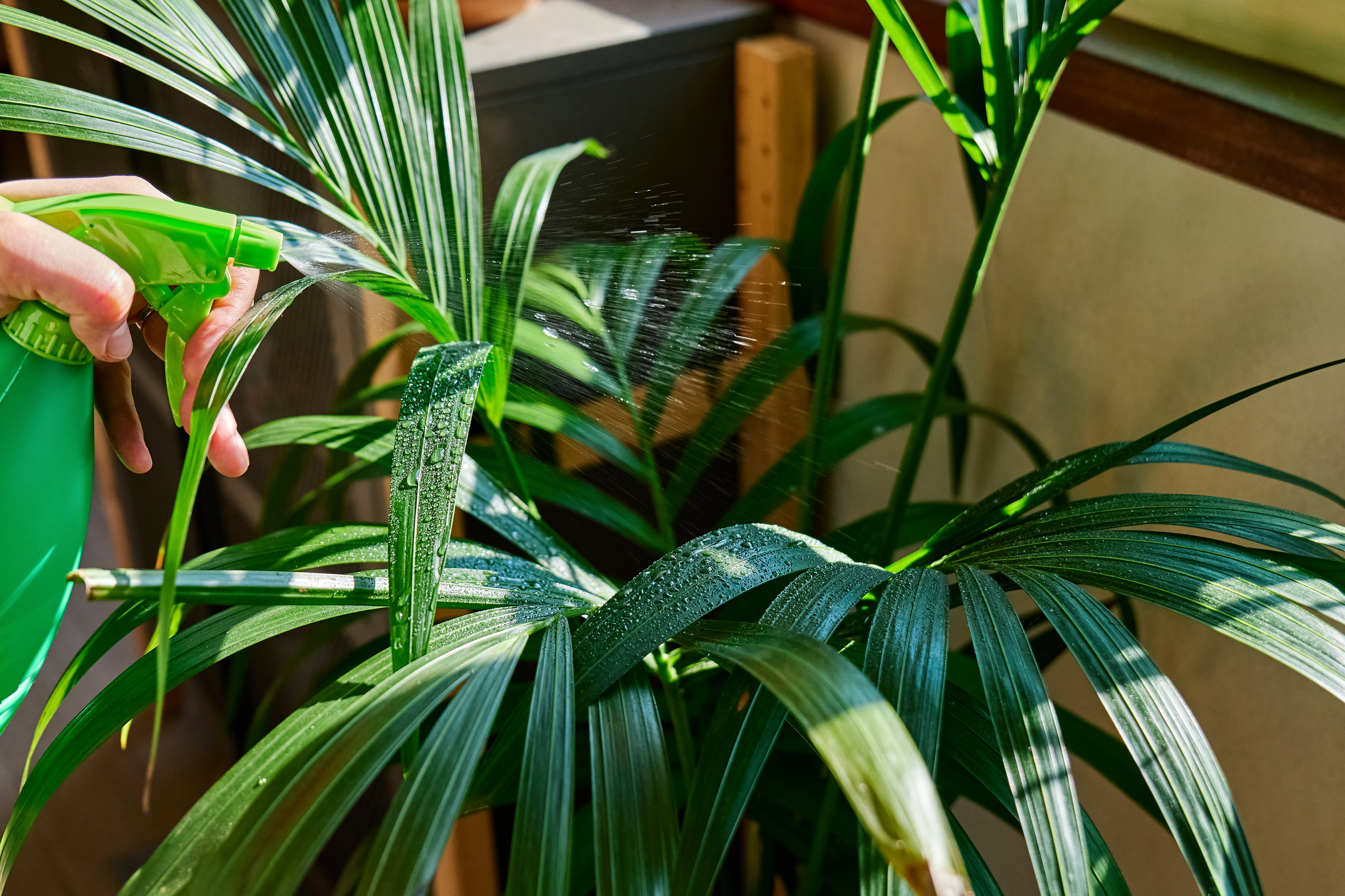 Om de Kentia mooi te houden kun je hem regelmatig sproeien. De Kentia palm heeft weinig snoei nodig, maar verwijder af en toe dode of verwelkte bladeren. Om de plant te verjongen, kun je de wortels voorzichtig verplaatsen naar een grotere pot. Stekken is moeilijk, maar je kunt nieuwe scheuten verkrijgen door de wortelkluit te vermeerderen. Let op overbewatering.