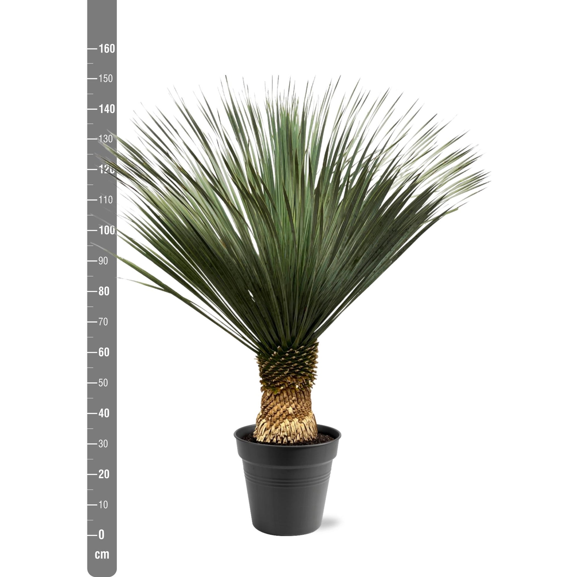 De Yucca Rostrata is een indrukwekkende tropische plant voor buiten, bekend om zijn stoere uitstraling en lange, zilvergroene bladeren. Deze vetplant heeft een robuuste stam en is perfect voor zonnige, droge plekken in je tuin of op je terras. De Yucca Rostrata brengt een subtiele, exotische sfeer en is bijzonder winterhard, waardoor hij het hele jaar door zijn charme behoudt.